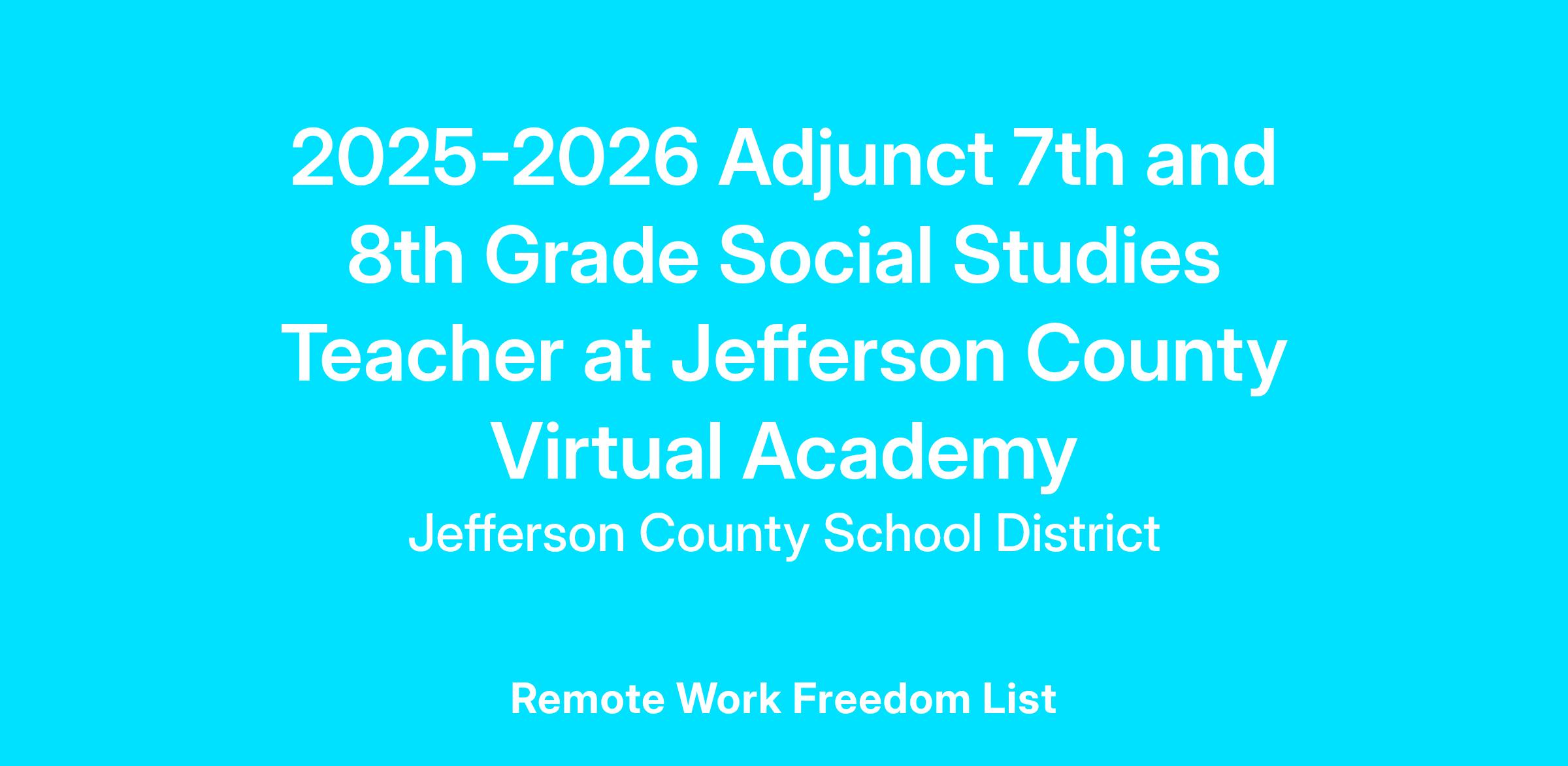 Description: The Jefferson County Virtual Academy (JCVA) adjunct staff member will facilitate student learning utilizing JCVA’s digital platform, district curriculum, and supplemental material in a fully online setting. Adjunct staff members are expected to be excellent communicators to ensure parents and students understand student learning progressions throughout the semester. JCVA teachers are expected to complete these tasks outside of their regularly contracted hours.