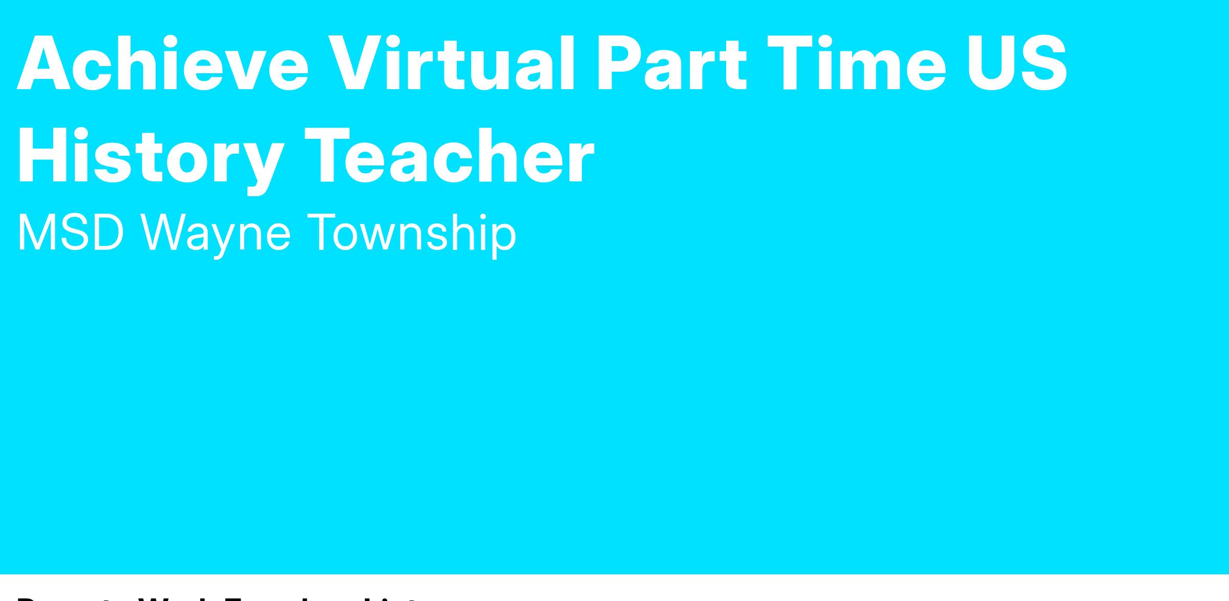 Achieve Virtual partime online asychronous teacher licensed in Historical Perspectives (US History for primary subject).