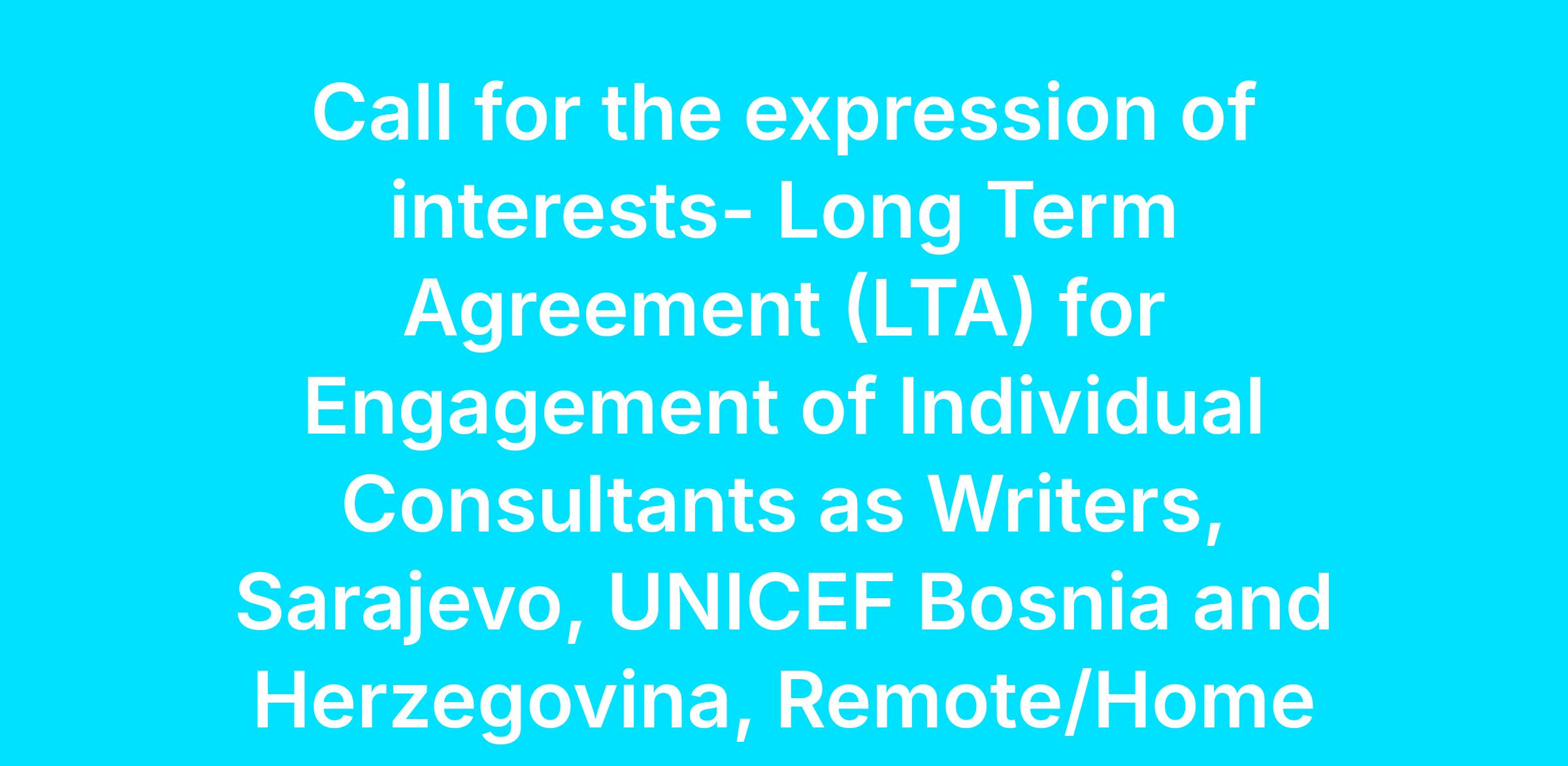 To meet this requirement, UNICEF would like to engage the services of writers for documenting UNICEF activities and programmes in Bosnia and Herzegovina.