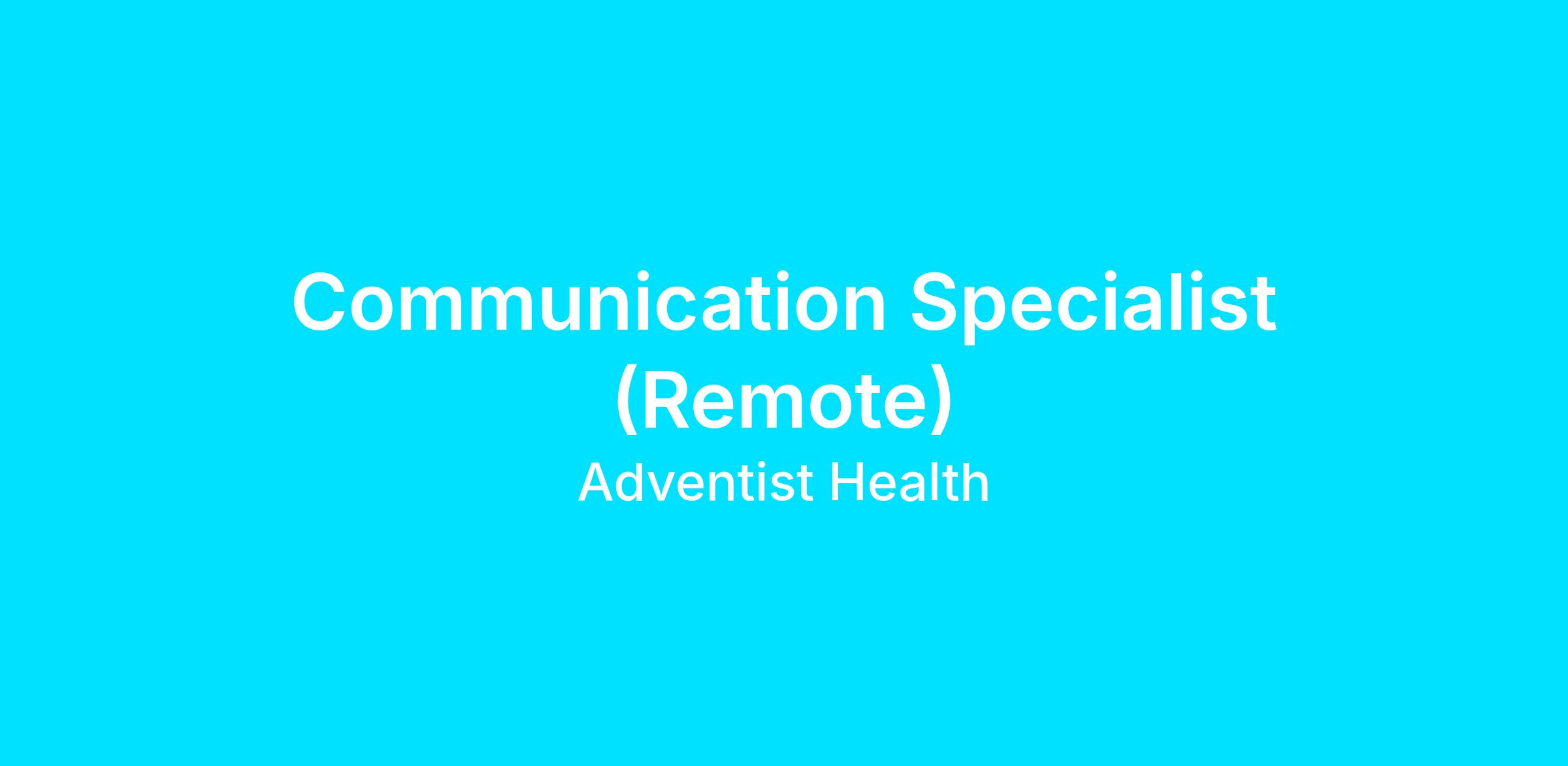 Communication Specialist (Remote)