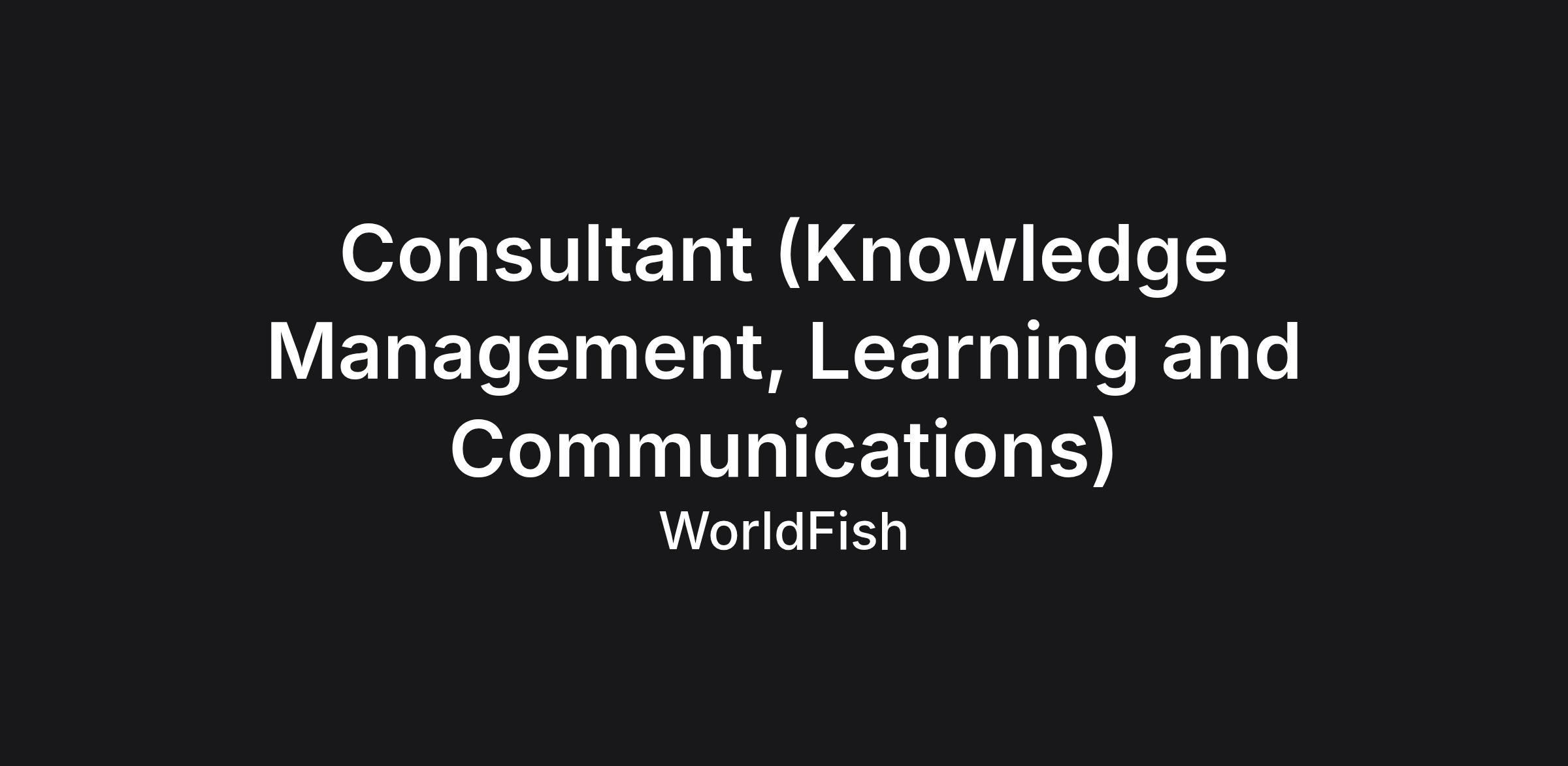 Consultant (Knowledge Management, Learning and Communications)