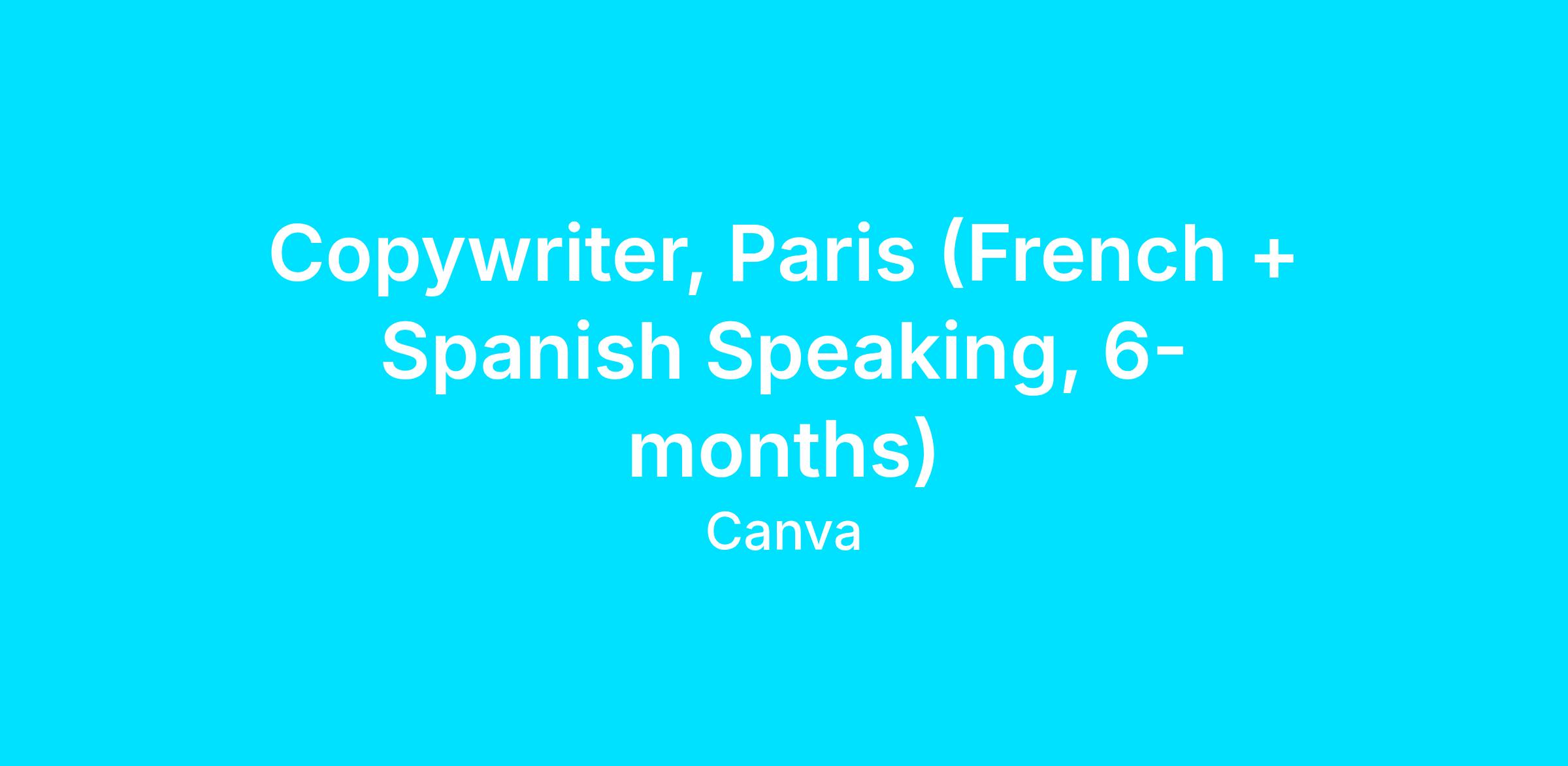As a Copywriter, you’ll craft clear, compelling, and locally relevant content for performance marketing campaigns, Meta ad creatives, high-impact partnerships and campaigns. You'll work on evergreen initiatives to ensure a seamless flow of messaging between markets. Please note, this role requires fluency in French & Spanish, with professional level English. Collaborating closely with designers and marketers, you’ll help shape Canva’s voice in Europe and bring creative ideas to life.