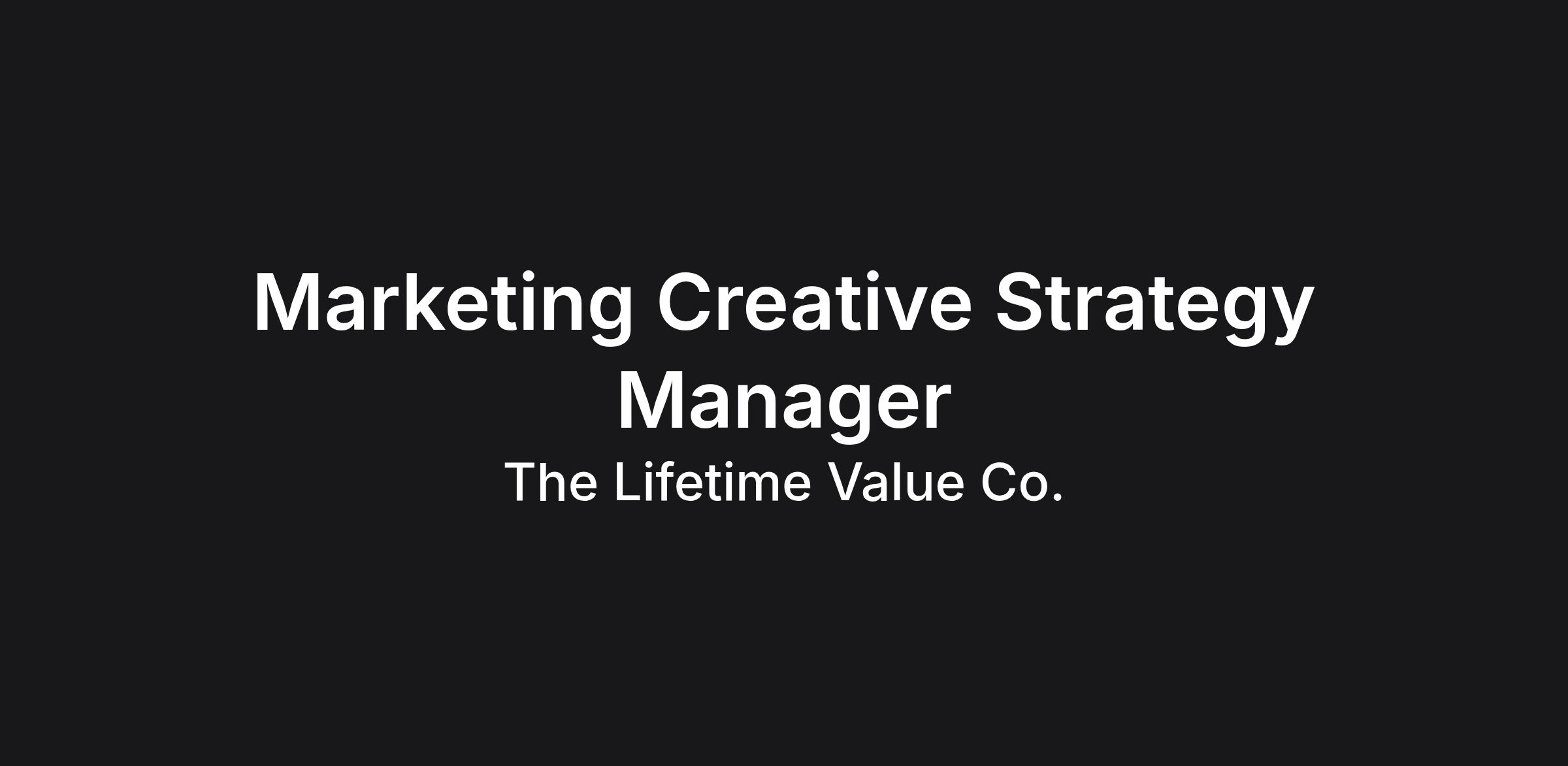 The Lifetime Value Co. is looking for a Marketing Creative Strategy Manager to lead the strategy, development, and optimization of performance-driven advertising creative across our paid marketing channels. This role will sit at the intersection of media buying, creative production, and analytics to ensure our advertising creative is continuously evolving, testing, and scaling to drive performance.