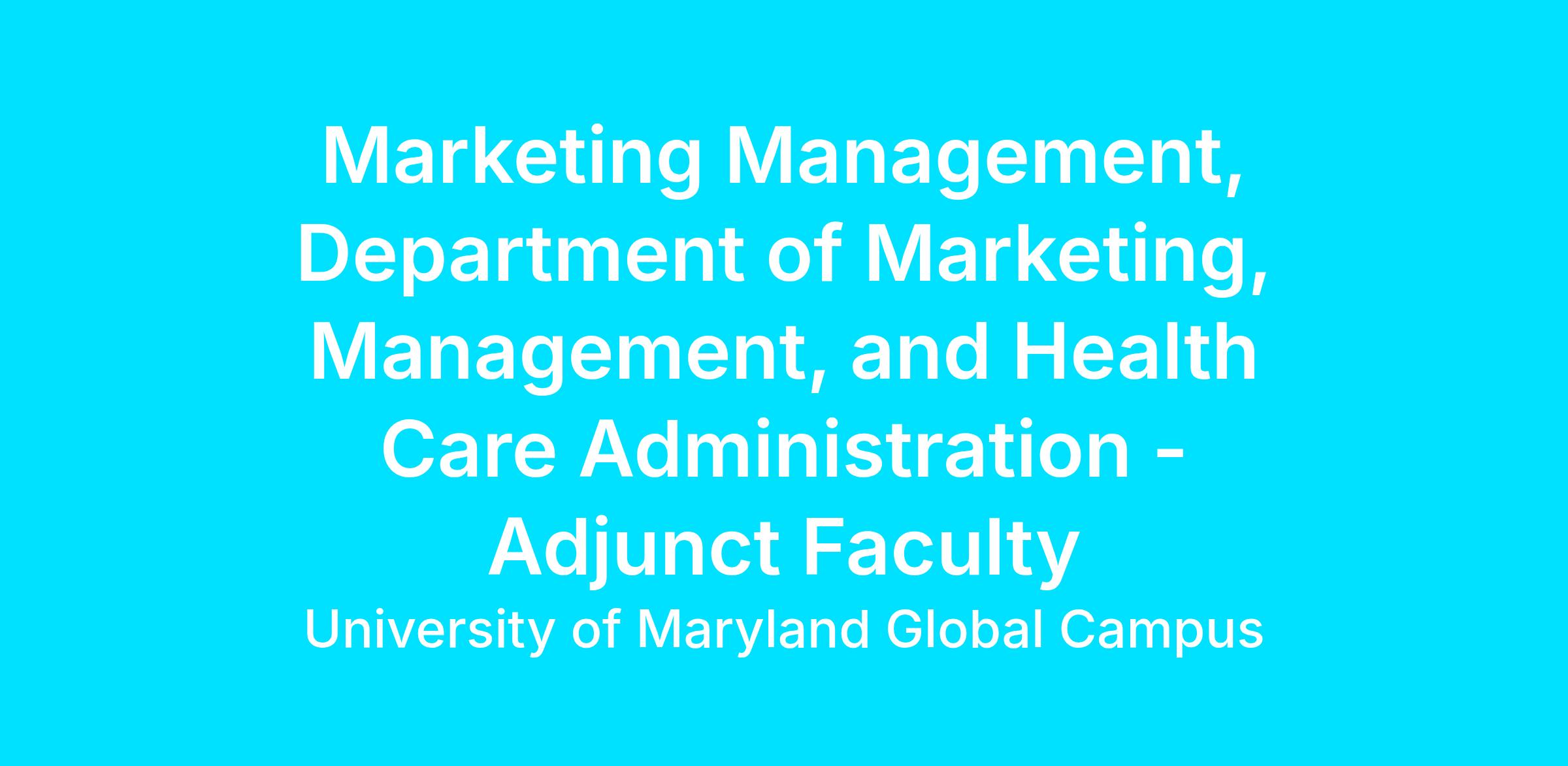 University of Maryland Global Campus (UMGC) seeks adjunct faculty to teach remotely in the Marketing Program. Specifically, we are seeking faculty in the following course(s):