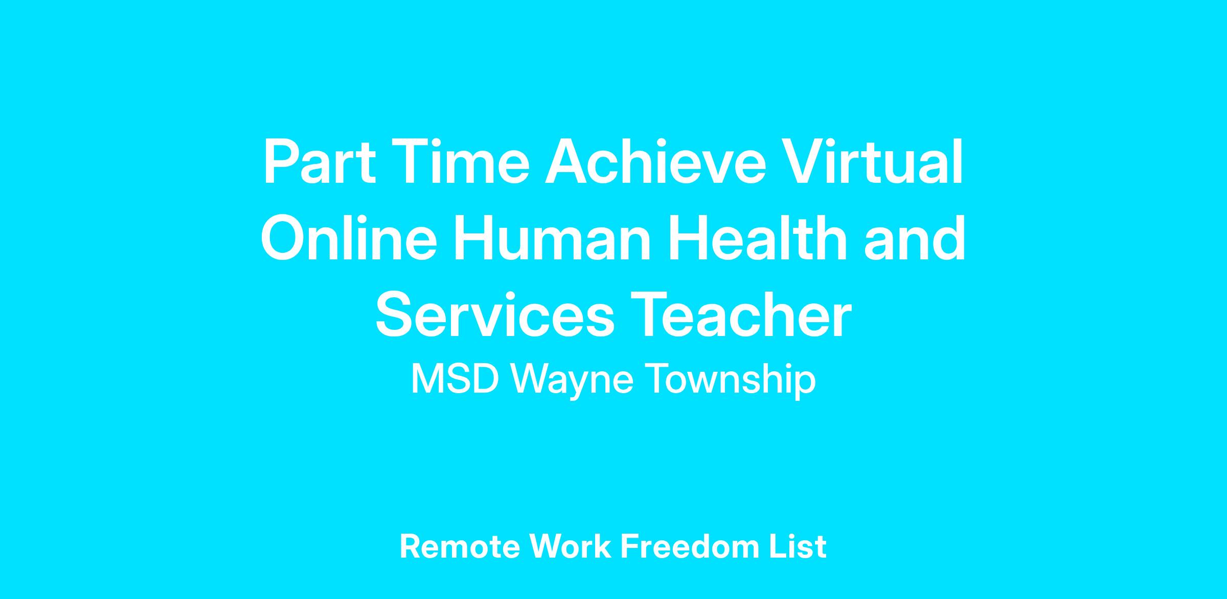 Part Time Achieve Virtual Online Human Health and Services Teacher
