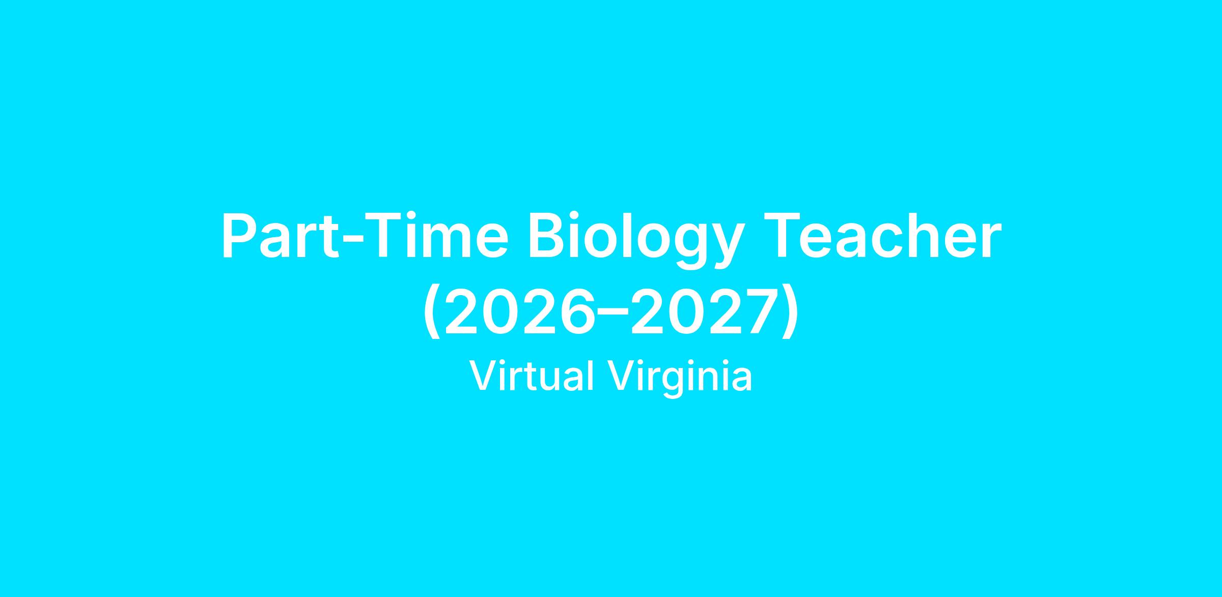 Virtual Virginia (VVA) seeks a Virginia-certified part-time instructor of Biology. The position requires working with curriculum in the Canvas Learning Management System (LMS), conducting regular live sessions with students, holding regular office hours, and maintaining open communication with parents, schools, students, and VVA administrators.