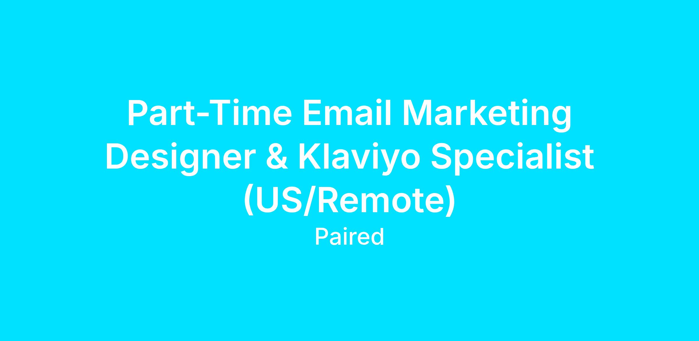 DescriptionPaired is a global staffing and recruiting agency dedicated to pairing top-tier talent with outstanding remote job opportunities. We are currently seeking an Email Marketing Designer & Klaviyo Specialist for a US-based company. This remote position allows you to contribute creatively while working from anywhere.