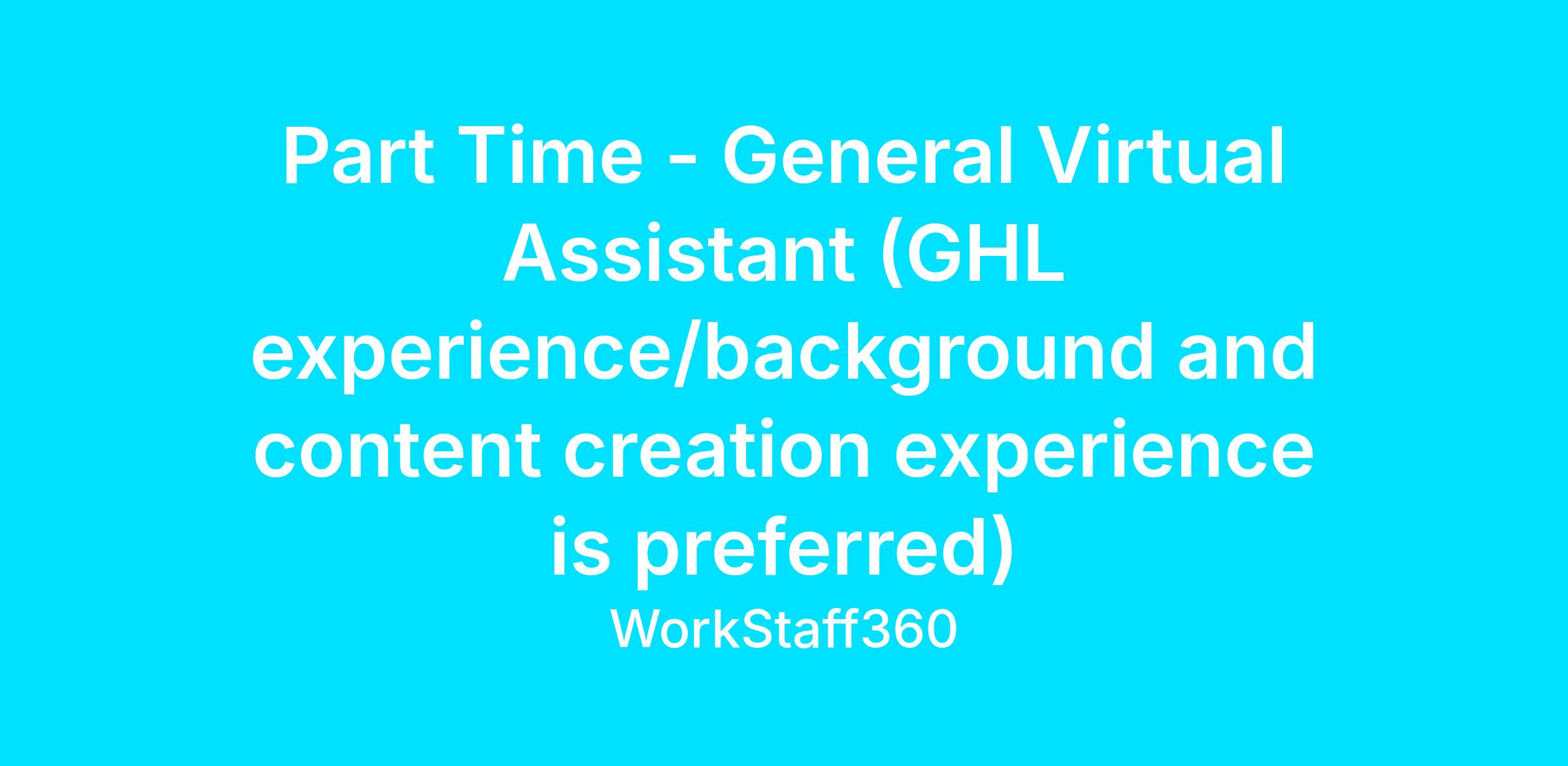 Part Time - General Virtual Assistant (GHL experience/background and content creation experience is preferred)