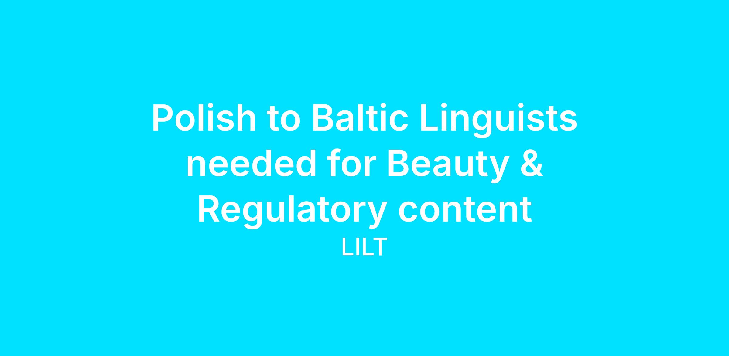 We are looking for Polish > Estonian, Lithuanian, and Latvian linguists for an upcoming project with a major Beauty/Cosmetics client. This project involves two distinct workstreams, and we require specialized linguists for each. If linguists can do both aspects, that would be ideal.