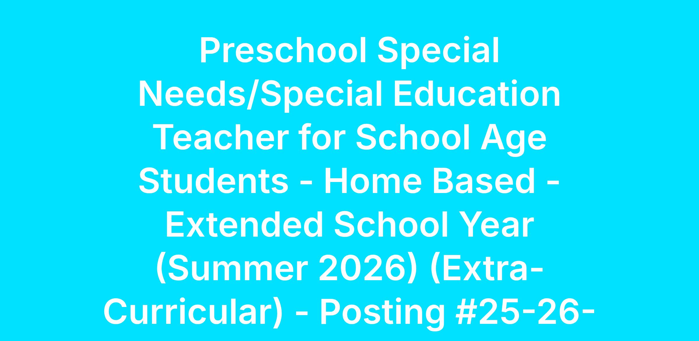 Preschool Special Needs/Special Education Teacher for School Age Students - Home Based - Extended School Year (Summer 2026) (Extra-Curricular) - Posting #25-26-471