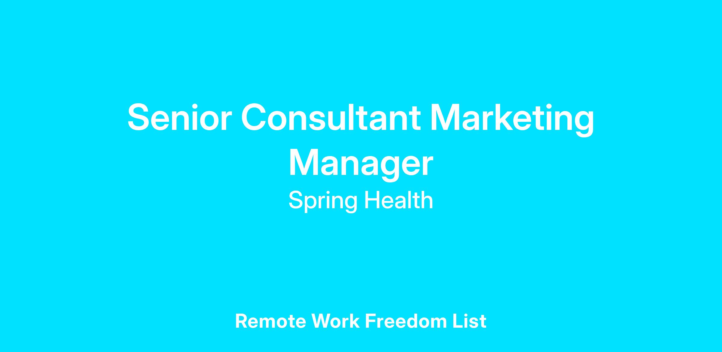 The Senior Consultant Marketing Manager plays a critical role in driving awareness, engagement, and revenue growth through the consultant channel. This role owns the strategy and execution of consultant-facing marketing programs that educate, enable, and activate brokers and consultants to influence employer decision-making and drive adoption of Spring Health’s solutions.