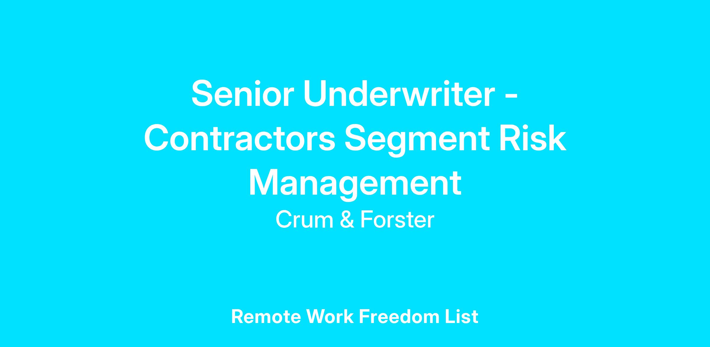 Contractors Segment Risk Management Construction - Senior Underwriter - Fully remote capable