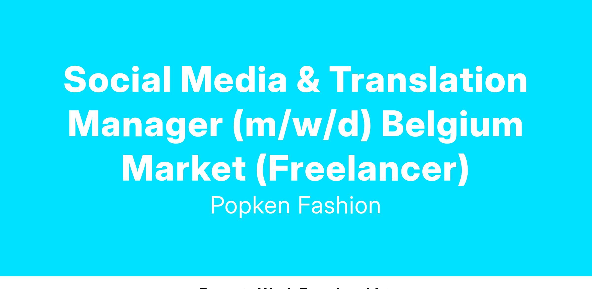 Social Media & Translation Manager (m/w/d) Belgium Market (Freelancer)