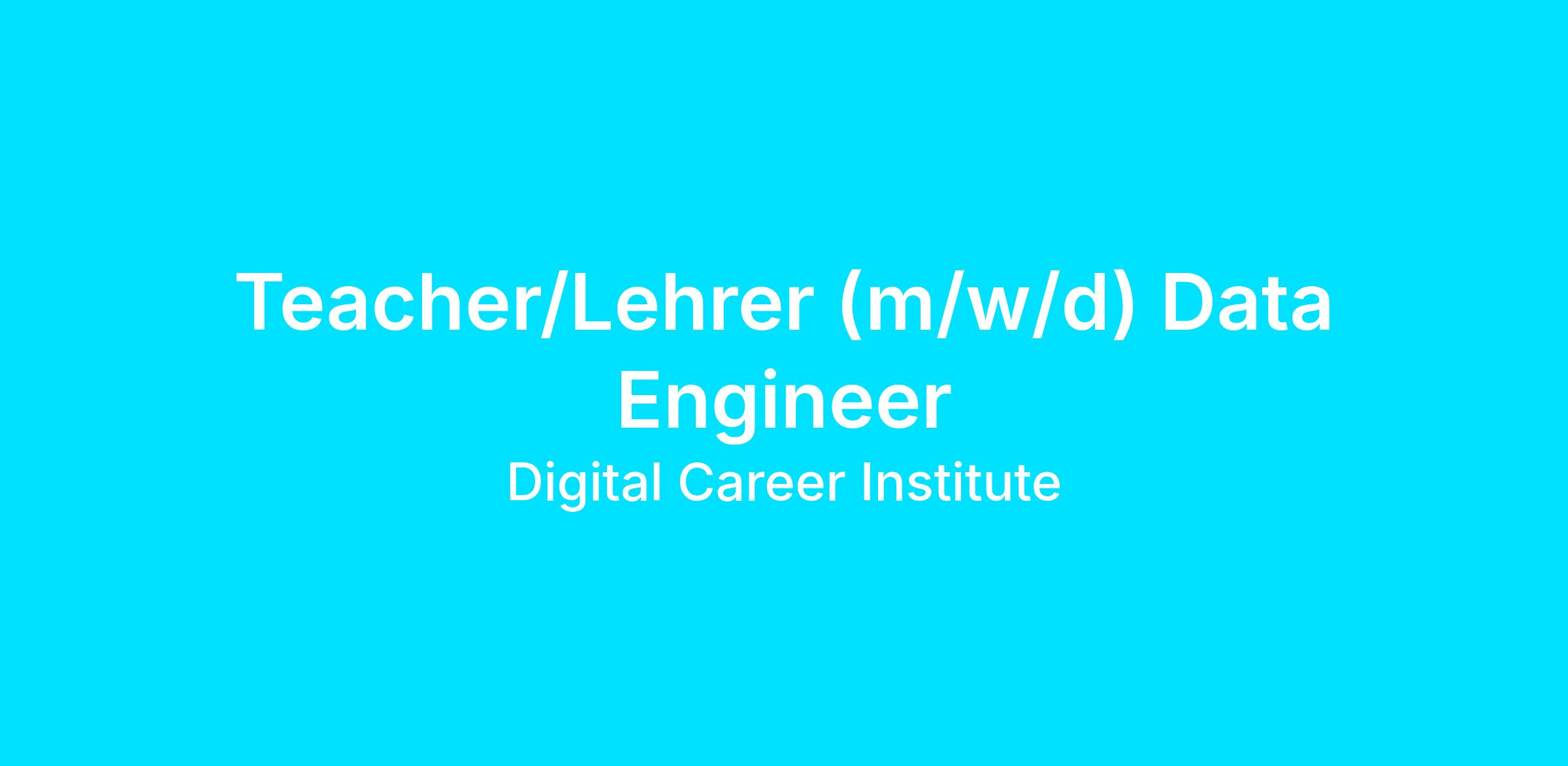 Teacher/Lehrer (m/w/d) Data Engineer