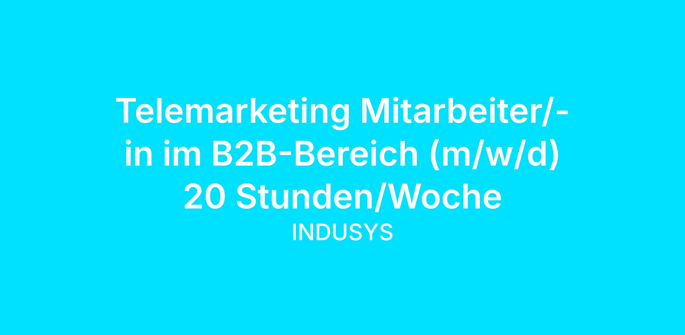 Telemarketing Mitarbeiter/-in im B2B-Bereich (m/w/d) 20 Stunden/Woche