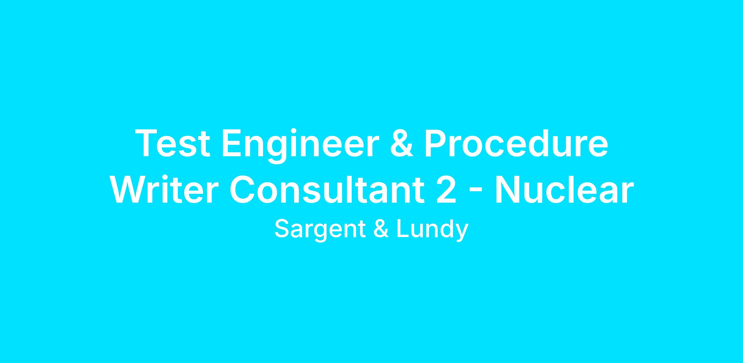 Test Engineer & Procedure Writer Consultant 2 - Nuclear