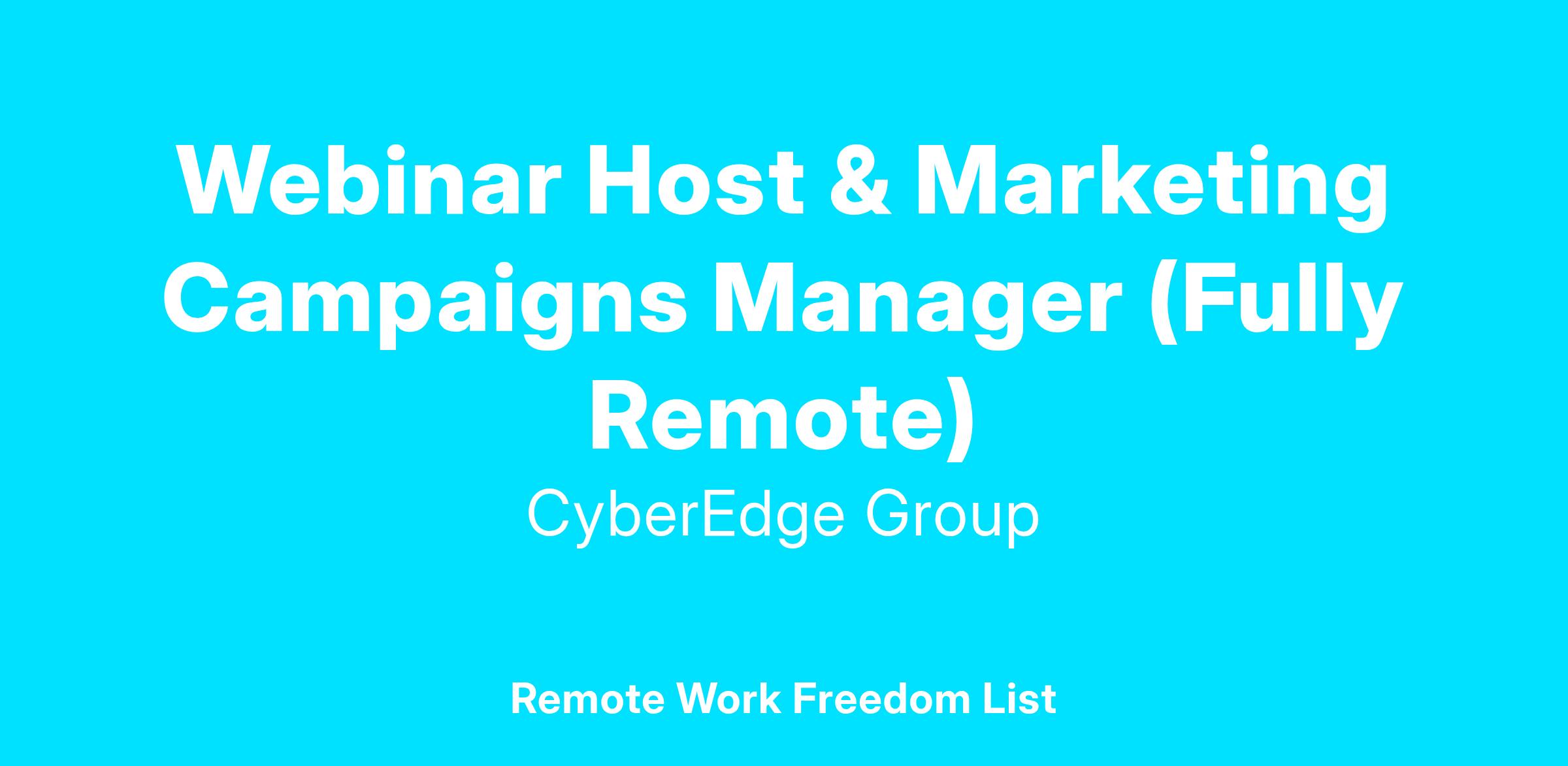 CyberEdge is currently recruiting a part-time independent contractor to serve as a second Webinar Host & Marketing Campaigns Manager. The first few weeks will provide approximately five billable hours per week. Then, as time passes, billable hours will expand to 10, 15, and then 20 hours/week. It's possible that, within a year, this role will expand to full-time status.